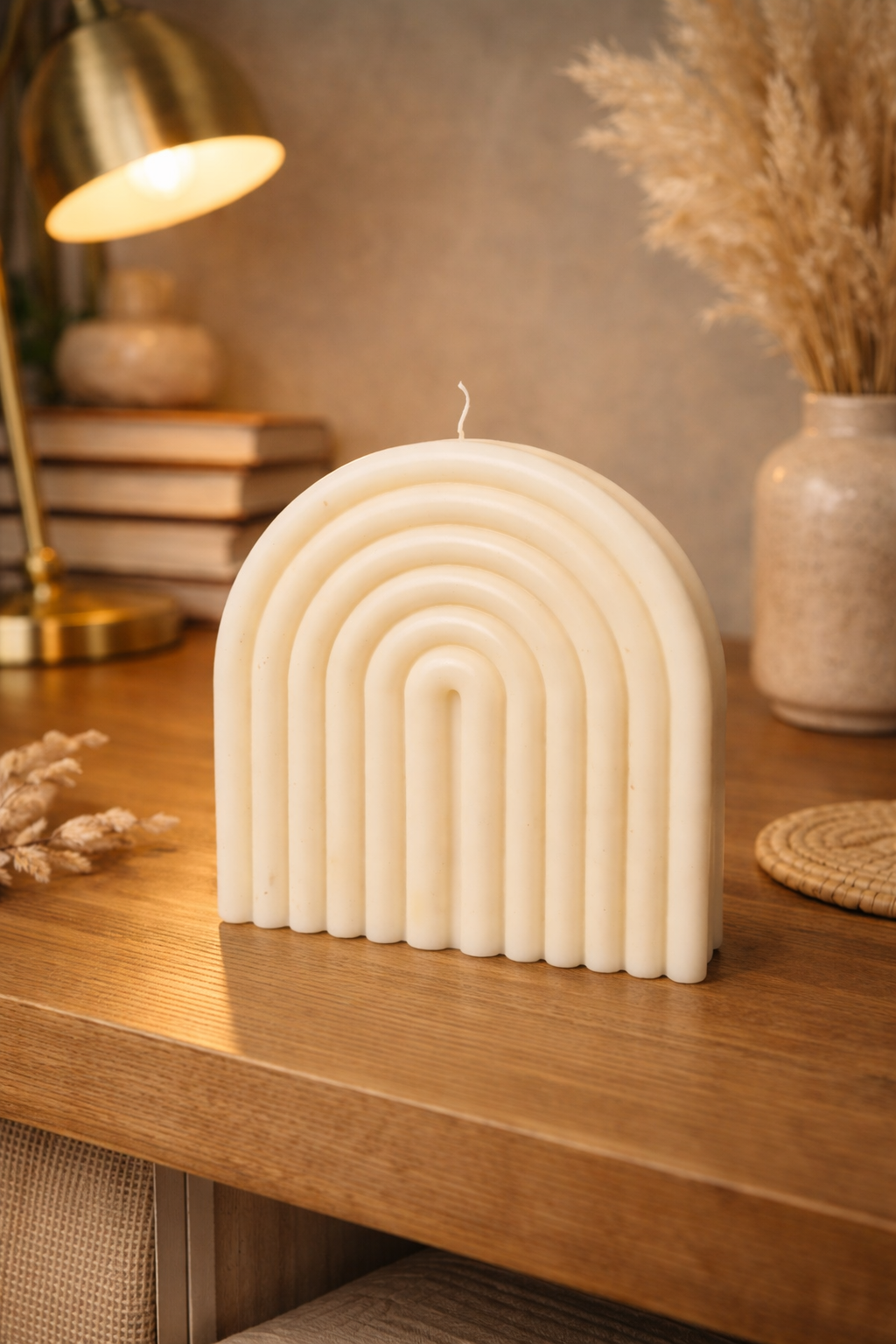 Świeca sojowa w kształcie łuku to wyjątkowa dekoracja, która wprowadza do wnętrza harmonię i subtelny klimat. Jej delikatny, nowoczesny design doskonale komponuje się zarówno z minimalistycznymi, jak i klasycznymi aranżacjami. Wykonana z wysokiej jakości wosku sojowego, przyjaznego dla środowiska i bezpiecznego w użytkowaniu, świeca łuk to nie tylko element dekoracyjny, ale także elegancki pomysł na prezent lub podziękowanie dla gości. Idealnie sprawdzi się w salonie, sypialni czy przy specjalnych okazjach, dodając wnętrzu wyjątkowego charakteru i ciepła.