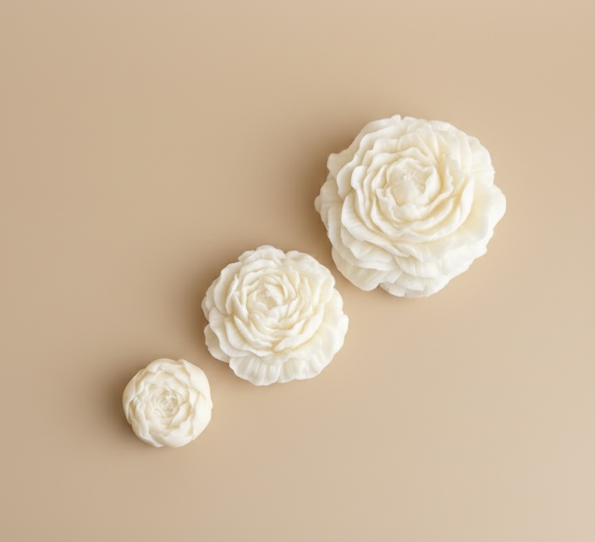 Świeca wykonywana jest ręcznie z naturalnego wosku sojowego, dzięki czemu stanowi bardziej ekologiczną alternatywę dla świec parafinowych. Starannie odwzorowane płatki piwonii sprawiają, że świeca prezentuje się niezwykle dekoracyjnie i może być zarówno pamiątką, jak i elegancką ozdobą stołu lub wnętrza.