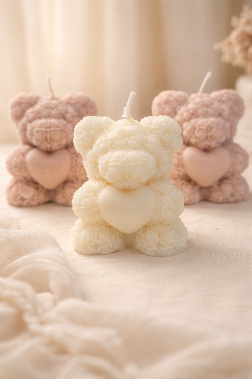 Świeca sojowa Mały Miś w Różyczki to uroczy i elegancki upominek, który idealnie sprawdzi się jako podziękowanie dla gości na każdej wyjątkowej uroczystości. Każda świeca ma kształt małego misia, delikatnie ozdobionego wzorem różyczek, co dodaje mu niepowtarzalnego, subtelnego uroku.