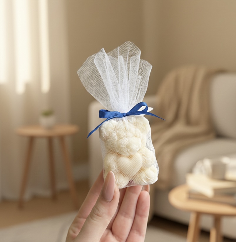 Każda świeca jest starannie zapakowana, gotowa do wręczenia gościom, co czyni ją praktycznym i efektownym upominkiem. To połączenie uroku, elegancji i troski o szczegóły sprawia, że Twoi goście poczują się wyjątkowo i docenią pamięć o nich.