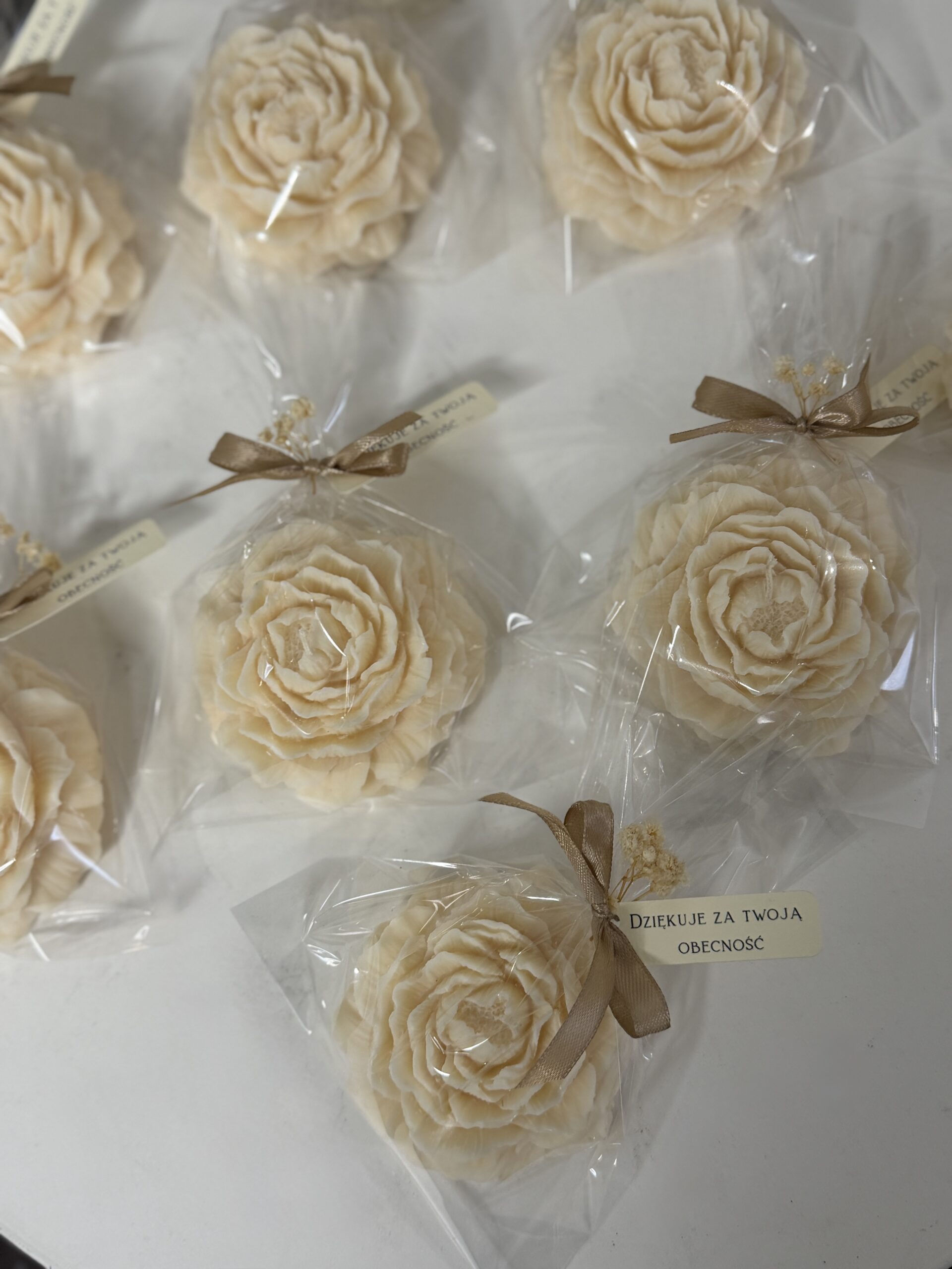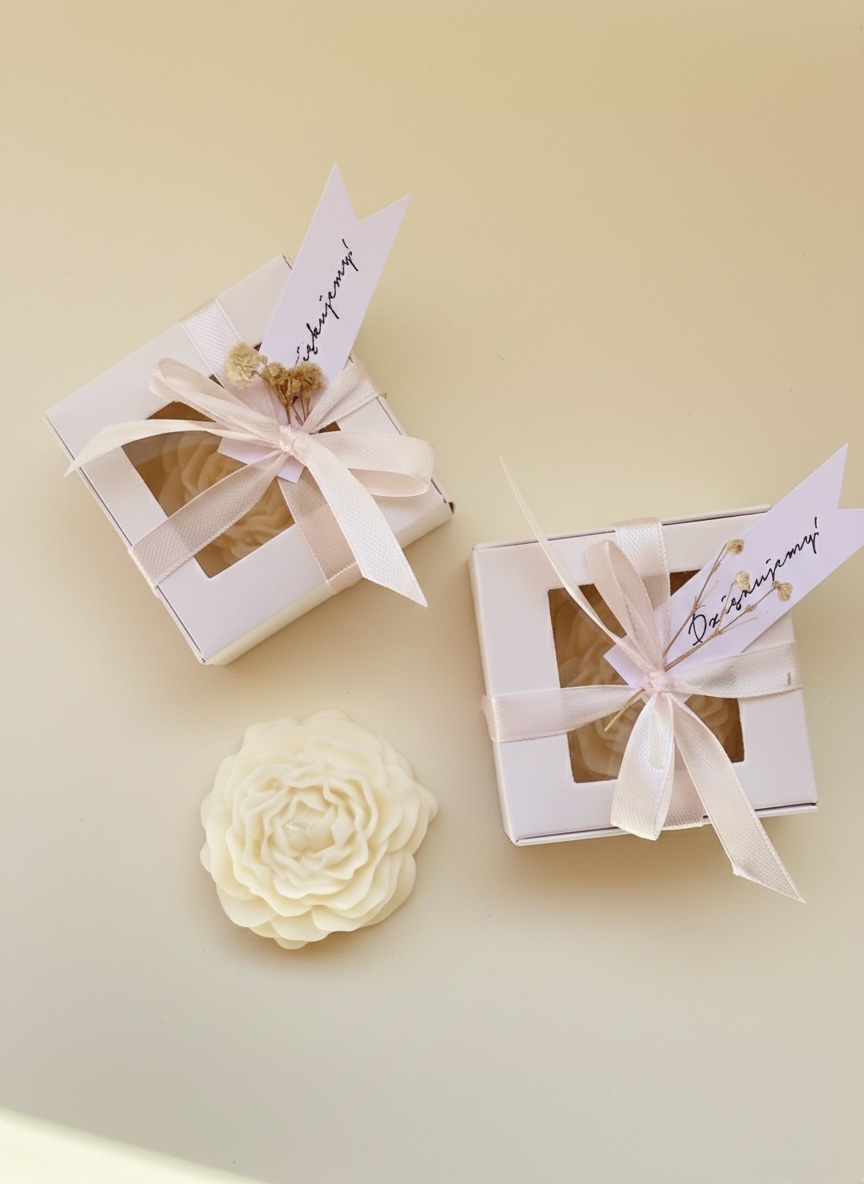 To subtelny i elegancki prezent, który łączy estetykę dekoracyjną z symbolicznym gestem wdzięczności. Świece w formie kwiatów są obecnie bardzo popularnym wyborem na podziękowania dla gości, ponieważ są uniwersalne, stylowe i ponadczasowe.